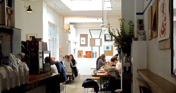 Full Stop フル・ストップ ブリック・レーンの北端、ベスナル・グリーン・ロードにぶつかる手前の流行発信エリアにあるロー・キーなカフ…