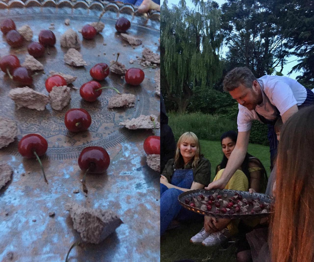 食後はふたたび芝生に戻り、今度は焚き火を囲んで親密なひとときを過ごしました。