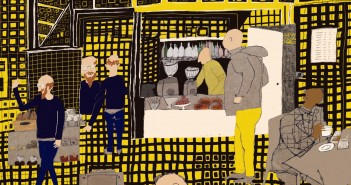 なんという店! こんな言葉が思わず飛び出す、カフェをみつけた あまり大きくない店の壁と床が黄色と黒で! …とにかく目がグルグルしてしまう こ…