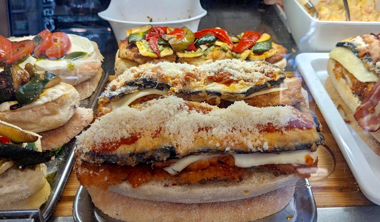 デリにはイタリアらしいパニーニ・サンドイッチが豊富だ。BLT、エッグマヨ&クリスピー・ベーコン、ツナ・サラダなどボリュームはかなりのもの。定番のチキン・エスカロープは、サラダ、モッツァレラ&チョリソー、モッツァレラ&パルマハムなど、一緒に挟めるものの選択肢も多い。