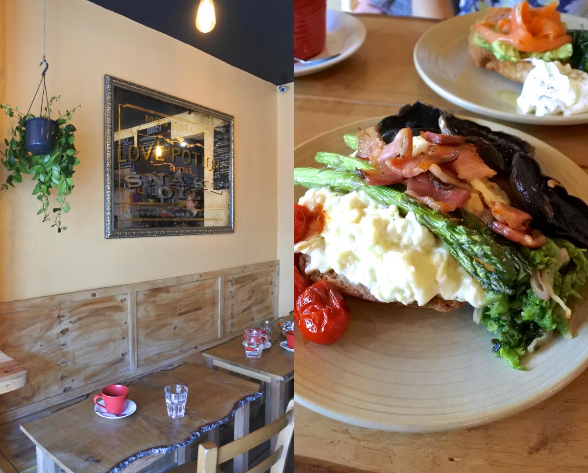 フリセッレ・メニューは5つ。スクランブル・エッグやベーコンを載せたイングリッシュ・ブレックファスト風、マリネ・サーモン&ポーチド・エッグ&アボカド、アボカドとチェリー・トマト、スモーキーチーズとナス&ペッパー、リコッタ・チーズとコジェット。どれもこれも試してみたい組み合わせでしたが、お腹がすいていたので私は迷わずイングリッシュ・ブレックファスト風、友人はサーモン&ポーチド・エッグに。