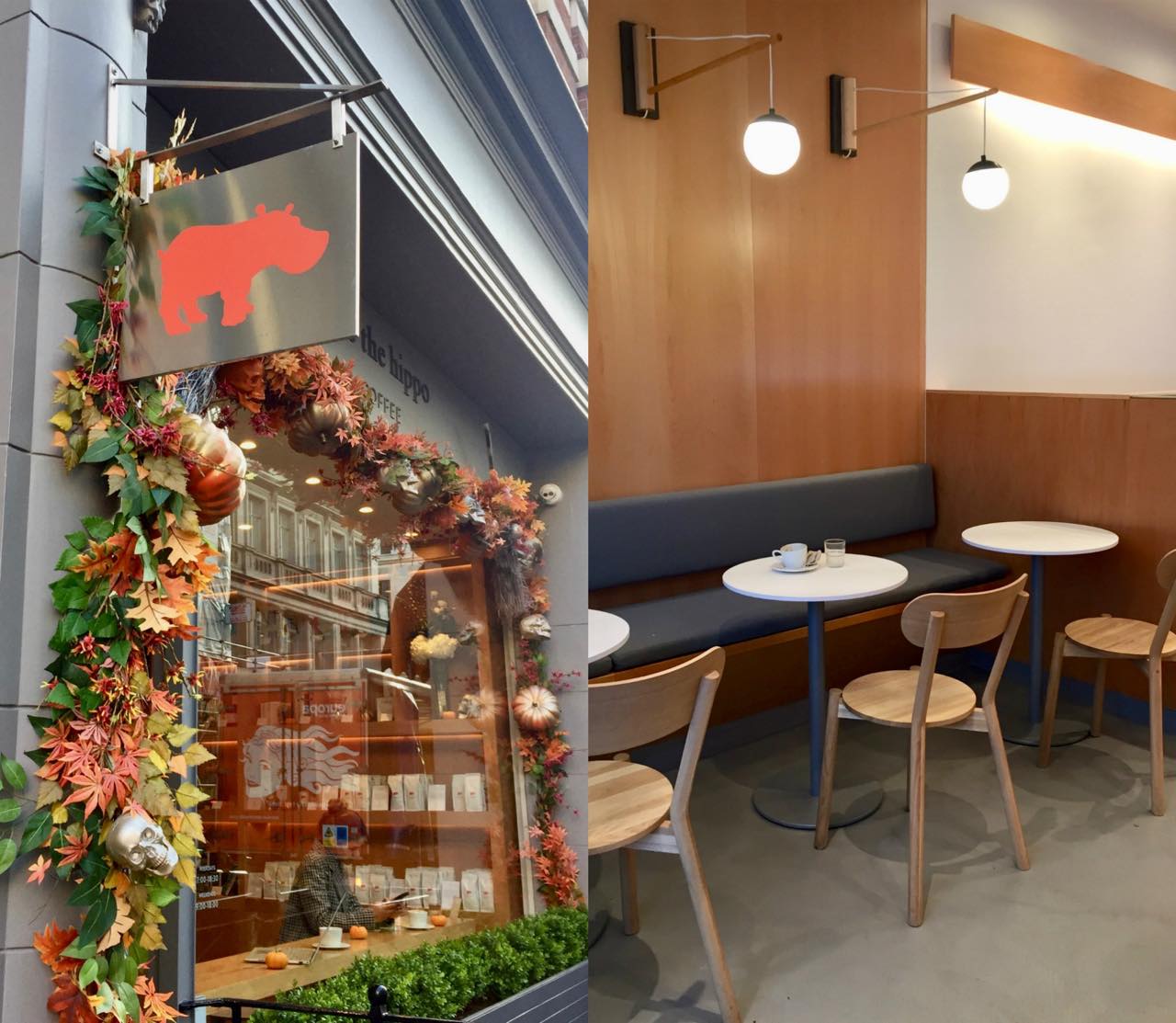 ヒップなオレンジのカバが目印。「カバにキスを」という不思議な名前のコーヒー・ショップはOxford Circusから歩いてすぐ、フィッツロヴィア側に佇んでいます。