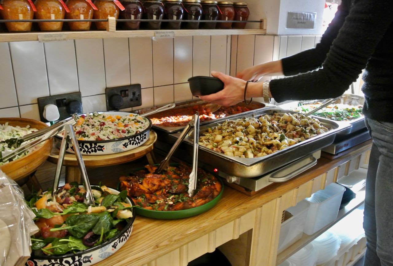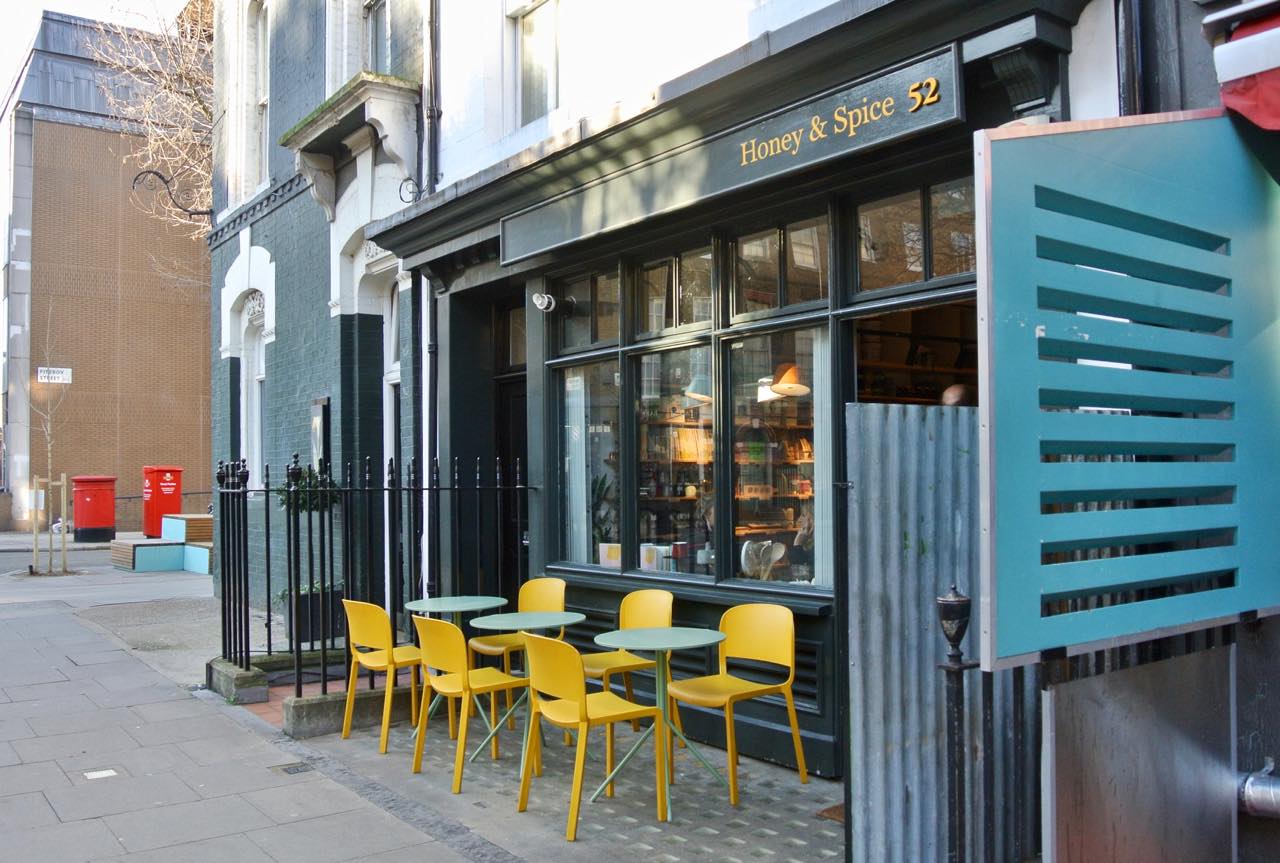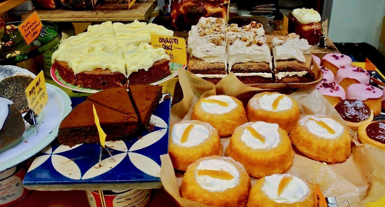 3軒のうち、こちらのHoney & Spiceはデリ部門。惣菜とお菓子、自家製ジャムやチャツネ、センスのよいキッチン用品やレシピ本などが夢のように並び、いつ来てもインスパイアされることこの上ありません。少ないですがカウンター席もあり、店内でもいただくことができます。