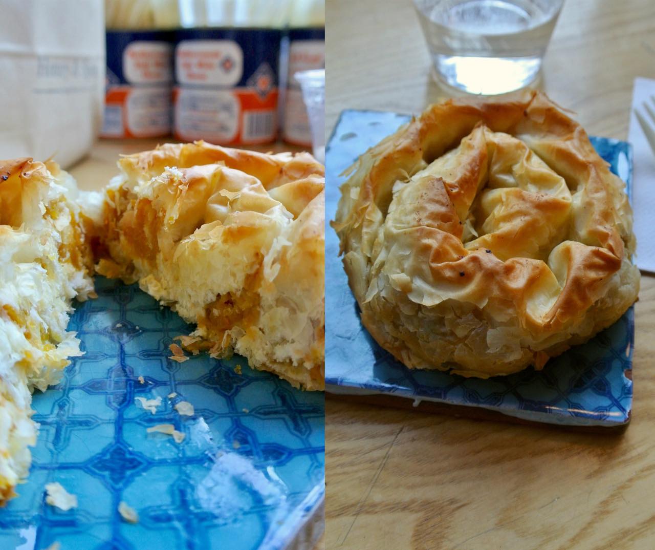 フィロペイストリーで作るパンプキンとフェタチーズのボレック(この店ではPhylasと書いてありました)! 6ポンドくらいするんですけど、ずっしり重くて中身ぎっしり。2名で分けるとちょうどいい塩梅です。
