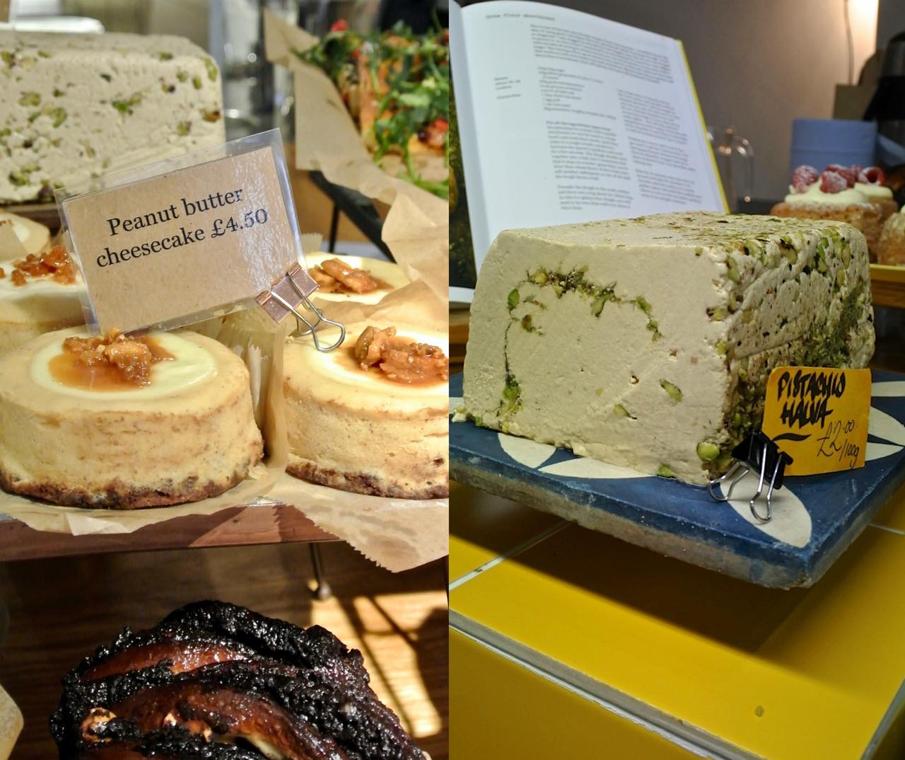 とてもキケンなピーナッツ・バター・チーズケーキ。右は自家製のピスタチオ・ハルヴァですが、私はまだ試したことありません。これはコアなネイティブの人たち用のお菓子のような気がしますけど・・・