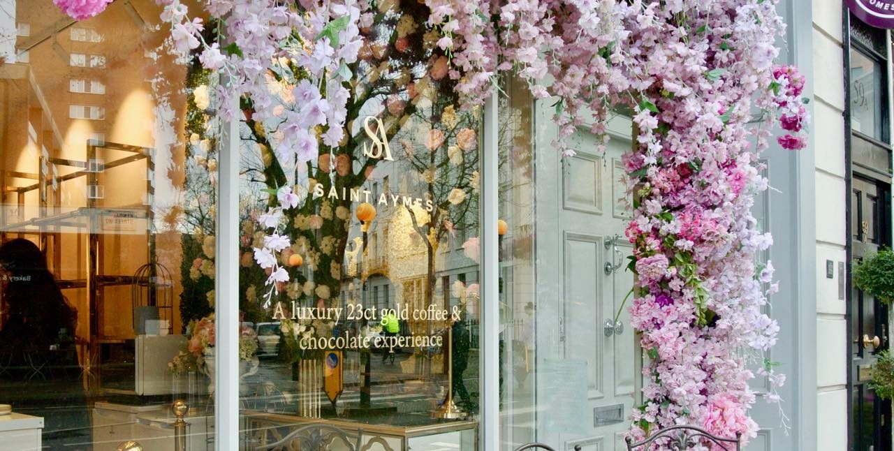 エントランスからインテリアまで、びっしりふわっとお花(造花)で飾る「お花カフェ」、近年のロンドンにどんどん増えてきています。アラブ系女性の好みだと認識しているのですが、このインスタ時代、それだけで人気が出ちゃうし目を引いちゃうのではありますが、こちらのSaint Aymesはただの可愛いカフェではありません。