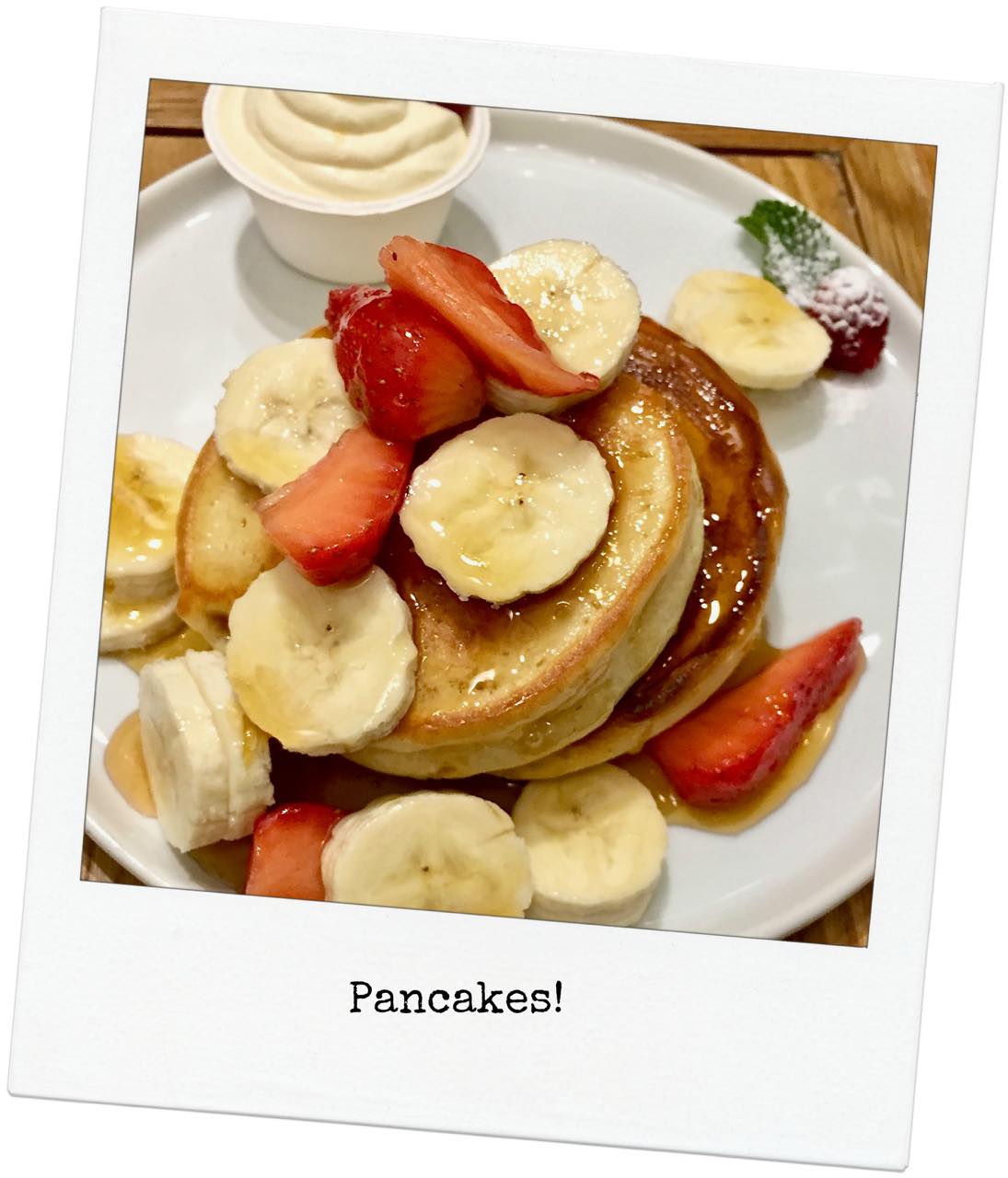 パンケーキと言って日本人の私たちが思い浮かべるのは、アメリカ風のふっくらパンケーキですが、イギリスでは平べったいクレープ状のものを伝統的にパンケーキと呼んできました。実はパンクスでは、その両方をいただくことができるのです^^
