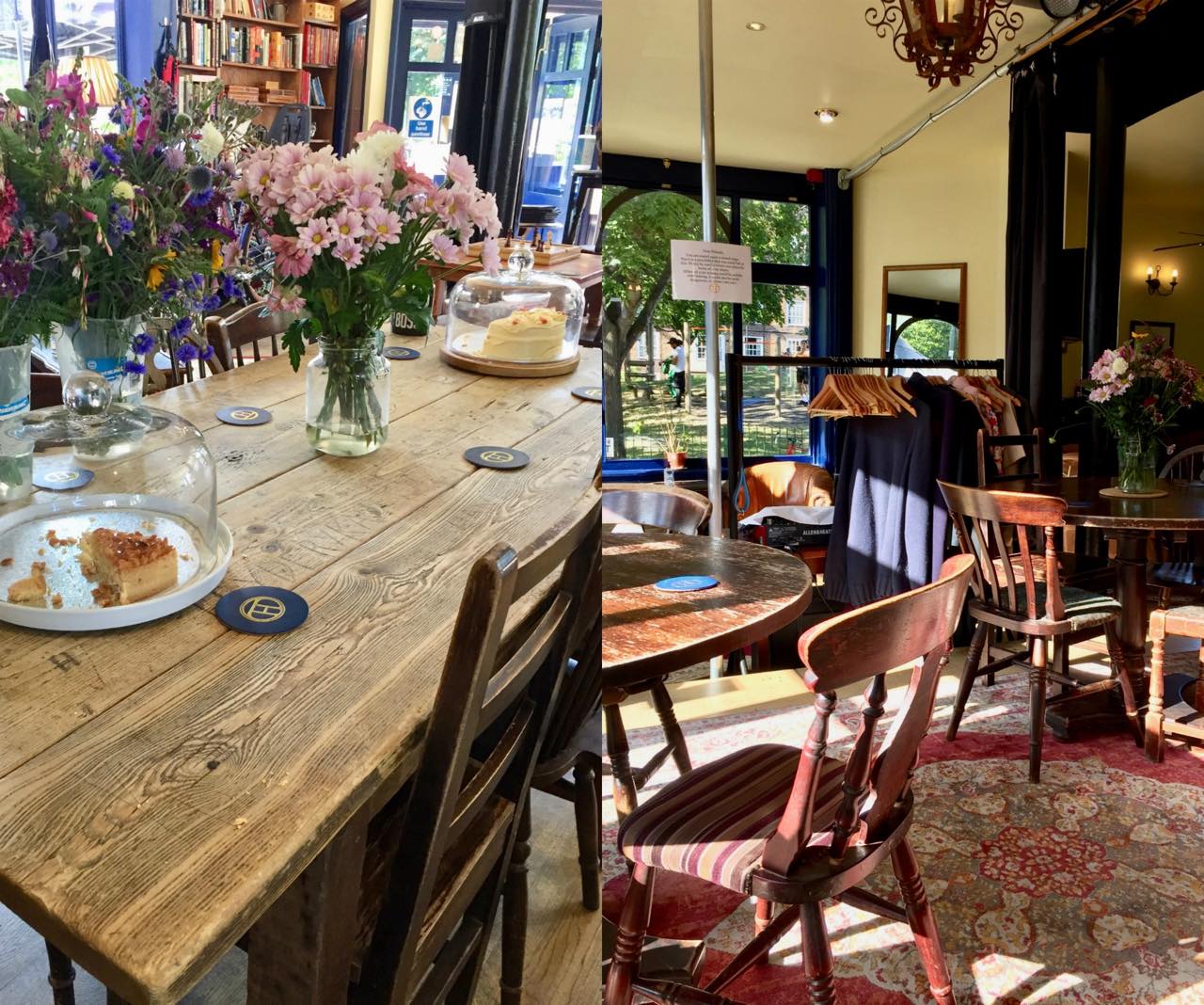 まさにパブの造り! でもティールーム♡ おそらくコロナでテーブルの配置も変えていると思われます。各テーブルの上にケーキを乗せているのも何か意味があるのかも。