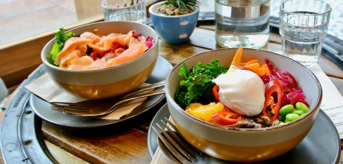 さて、Common Groundのオーナーのルーシーさんは「一日のうちでいただく食事なら、ブランチが最高!」と言う方だけあり、ちょっと変わり種のブランチ/ランチ・メニューが勢ぞろいしています。例えば黒米をベースにした栄養満点のハワイアン・ポケ。ロックダウン緩和後にすぐ訪れたらほぼ満員御礼で、注文すると「調理に45分いただきます」。お米炊くのかなぁ^^; と思いつつも待った甲斐あり、味のバランスよく美味しくいただきました。カラフルな色も健康を応援!