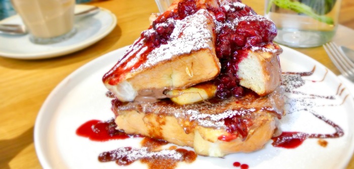 定番人気メニューの一つ、ブリオッシュのフレンチ・トースト。ソテーしたバナナとヌテラが決め手。