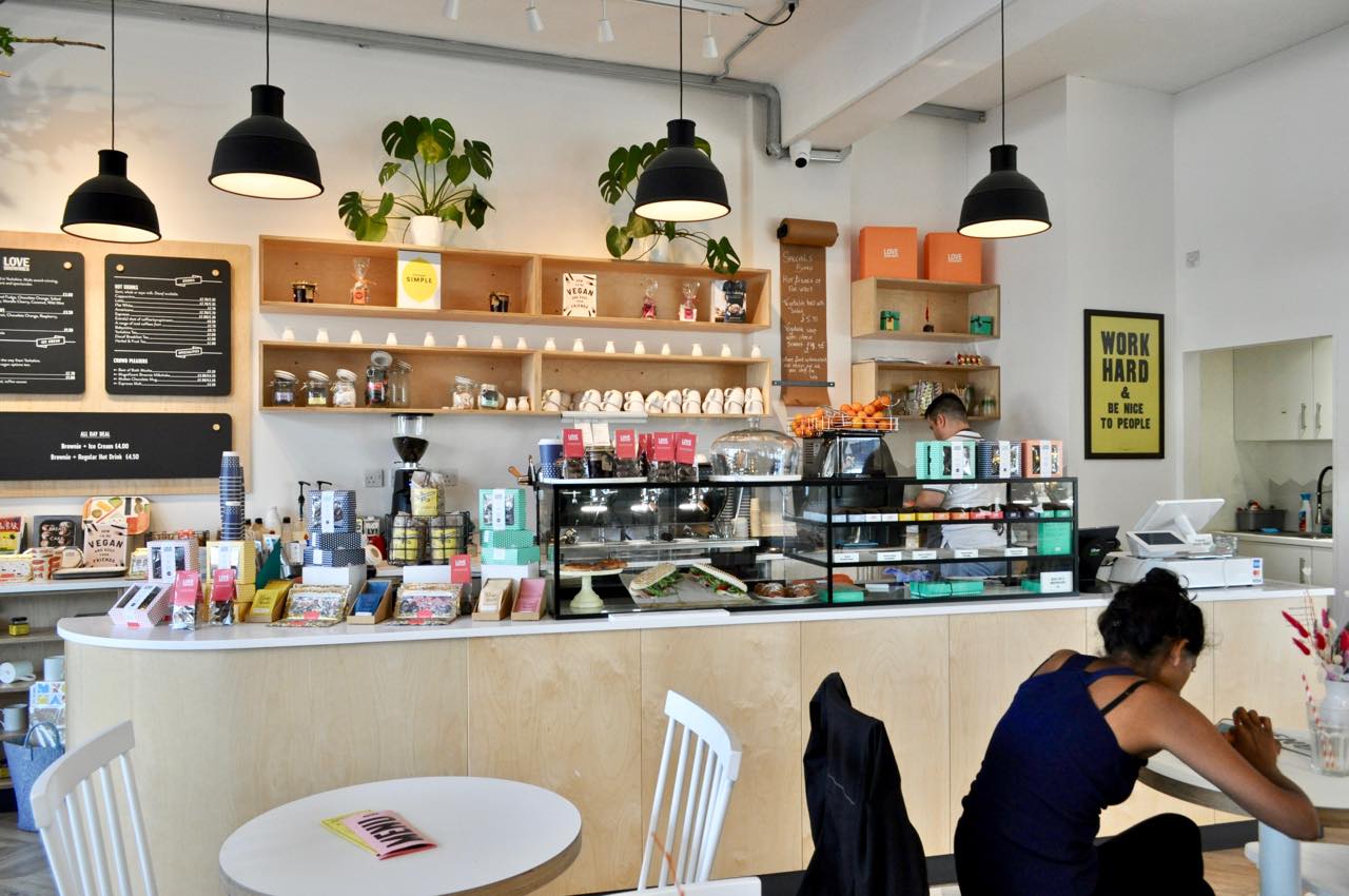 たまたま用事があった北ロンドンのサウスゲートで、このLove Browniesを発見した時はハートが高鳴りました。駅前の趣あるショッピング・モールの一画に佇むカラフルでキュートなカフェ! 少し郷愁を感じるレトロな商店街の中でポツンと、ポップな異彩を放っていたのです。