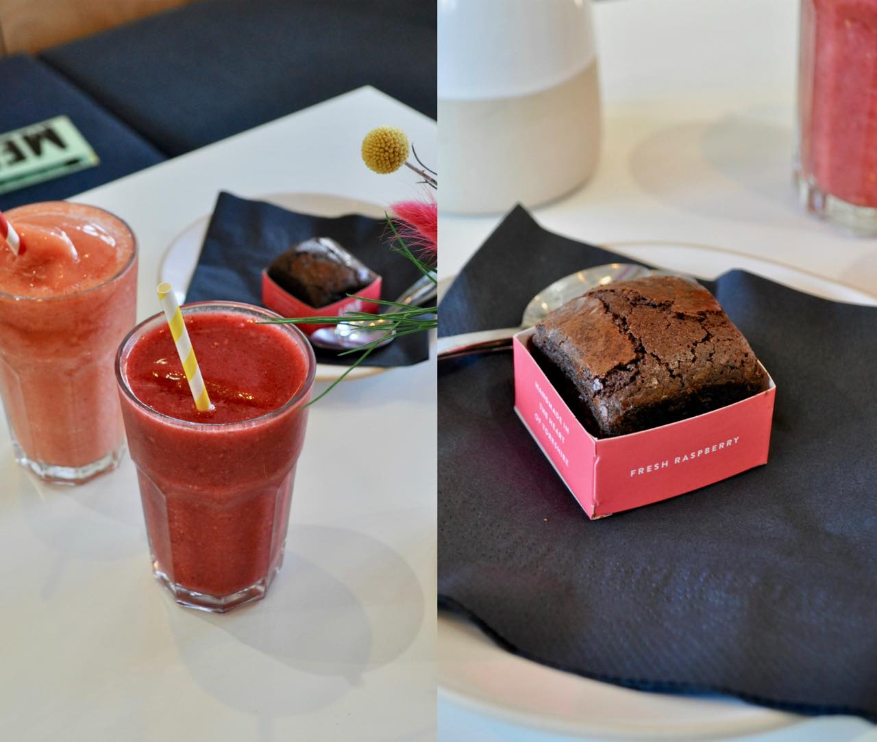 さて、この日はあまりお腹も空いていなかったことから、どれか一つをシェアしてお味見しようという話になり、選んだのがこちら、2016年のGreat Tasteアワードで2つの金星を獲得しているラスベリーのブラウニー♡