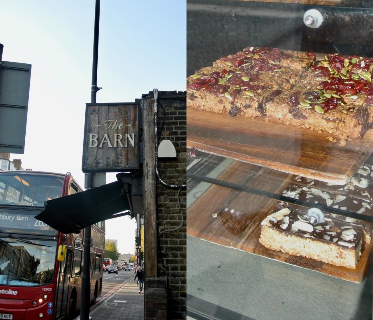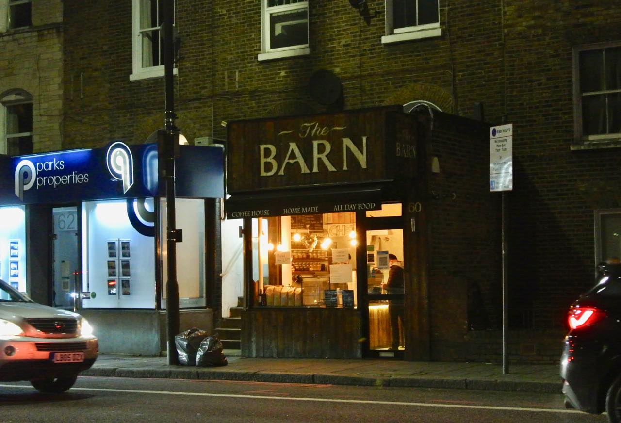 北ロンドンのホロウェイ・ロード沿いで、2014年に誕生した穴蔵風のインディペンデント・カフェ。半地下に降りていく構造が面白く、店名のBarnはきっと、木造の納屋のような風情を表しているのでしょう。入り口にはいつも目を惹きつけられる焼き菓子類がぎっしり♡ 私もそれに釣られて訪れること数度。中は常連さんでいつもいっぱい、居心地の良さが抜群なのです^^