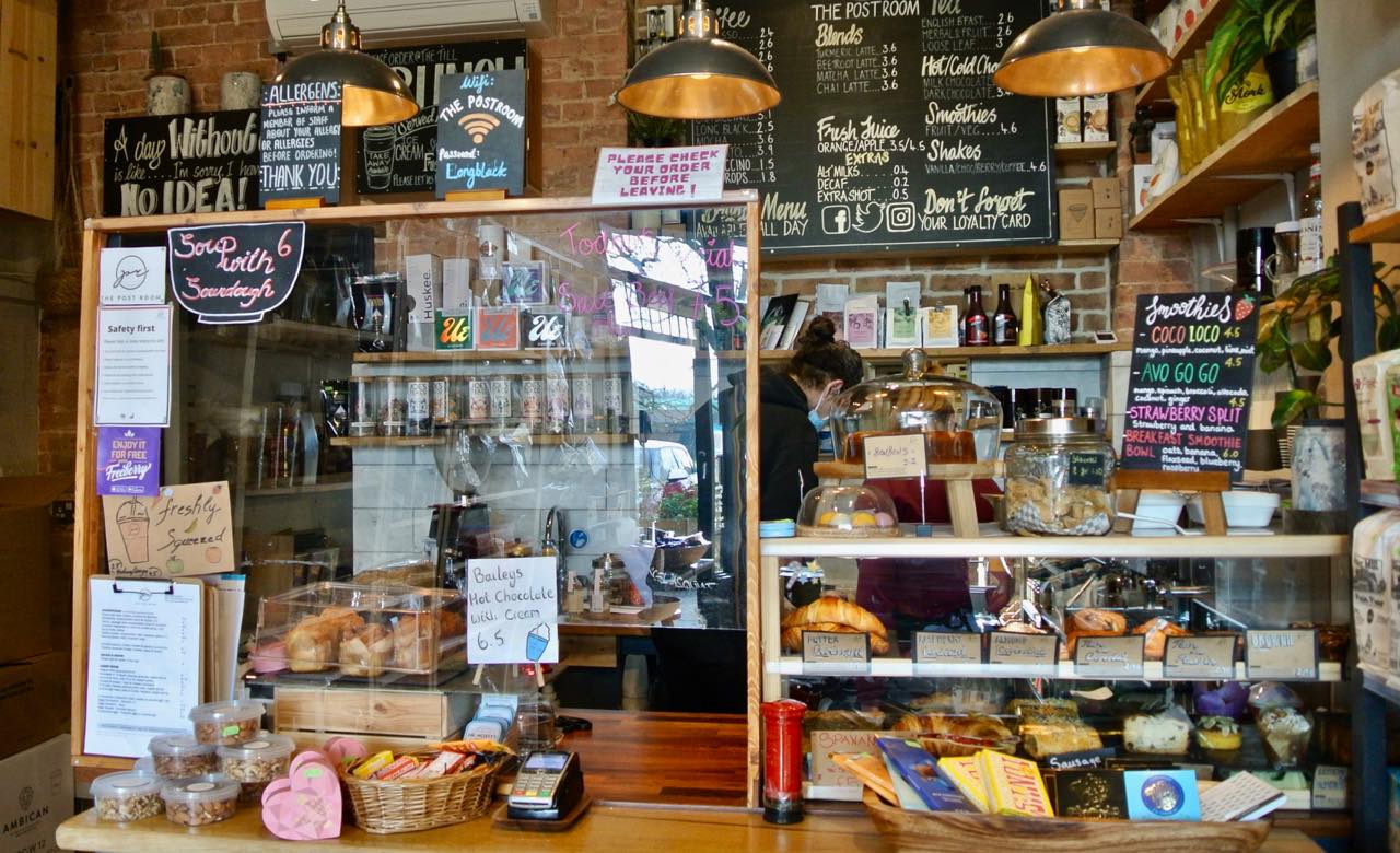 店名にも反映されているように、もともと郵便局だった場所を改装してオープンしたのが2019年春。1年でコロナ禍となり、現在は食料品の品揃えをより充実させることで生き残りをかけています。またコミュニティ・ハブとして地元アーティストたちをサポートする役割を担っていることも注目エレメント! さまざまな業界で20年に渡ってマーケティングやセールスの仕事をしていた男性が立ち上げたカフェなので、ご自身の夢がいっぱい詰まっている独立店なのですね。オープン2年にして、すっかり町の人気者なのです^^