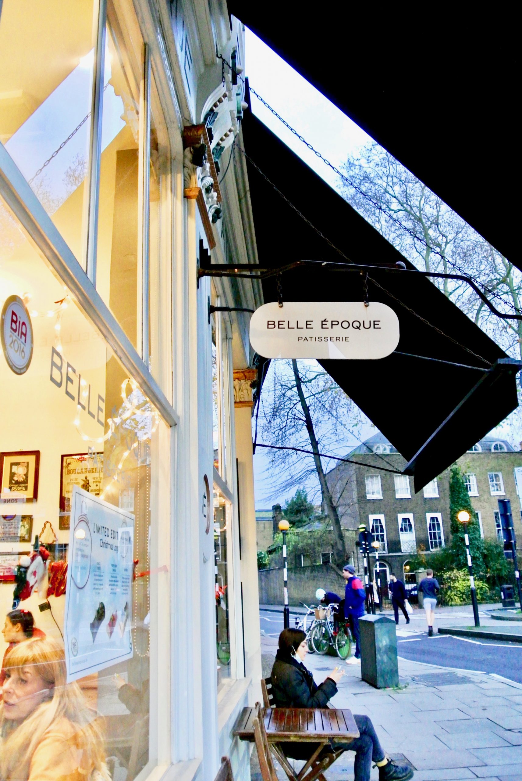 どこからどう見ても完璧なローカル・カフェ「ベル・エポック」♪ もう20年も、キャノンベリー駅から歩いて10分程度の緑のスクエア、ニューイントン・グリーンで昔ながらのフレンチ・ペイストリーを作り続けています。