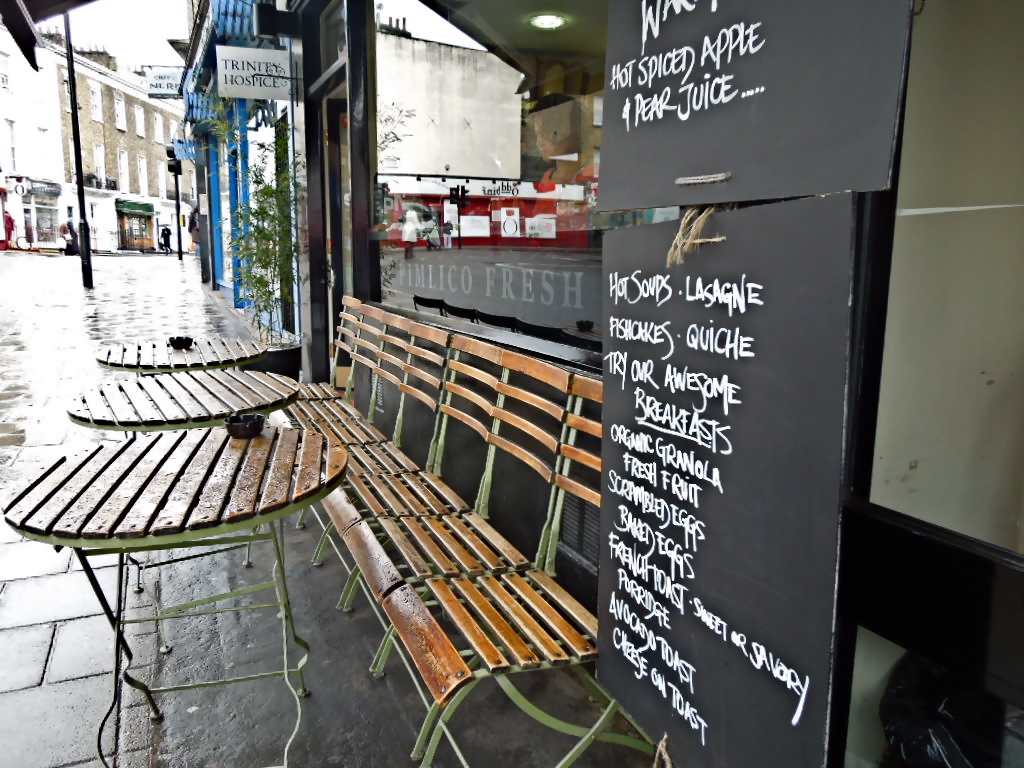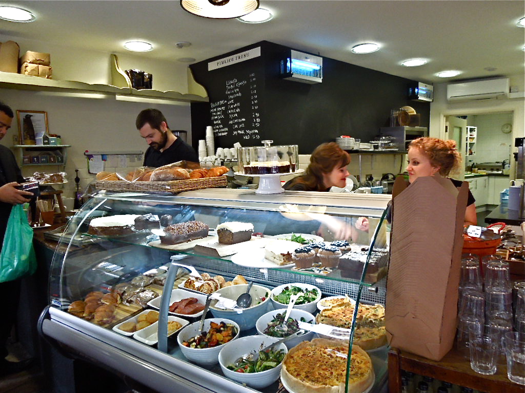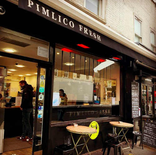 大型店やチェーン店が多いビクトリア駅周辺にあって、ウィルトン・ロードは独立系の店が多く、ローカルな雰囲気が漂う貴重な通りです。ここをピムリコ駅方面に南下していくと、ランチどきには行列ができる大人気のデリ・カフェ、ピムリコ・フレッシュがあります。