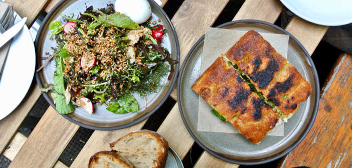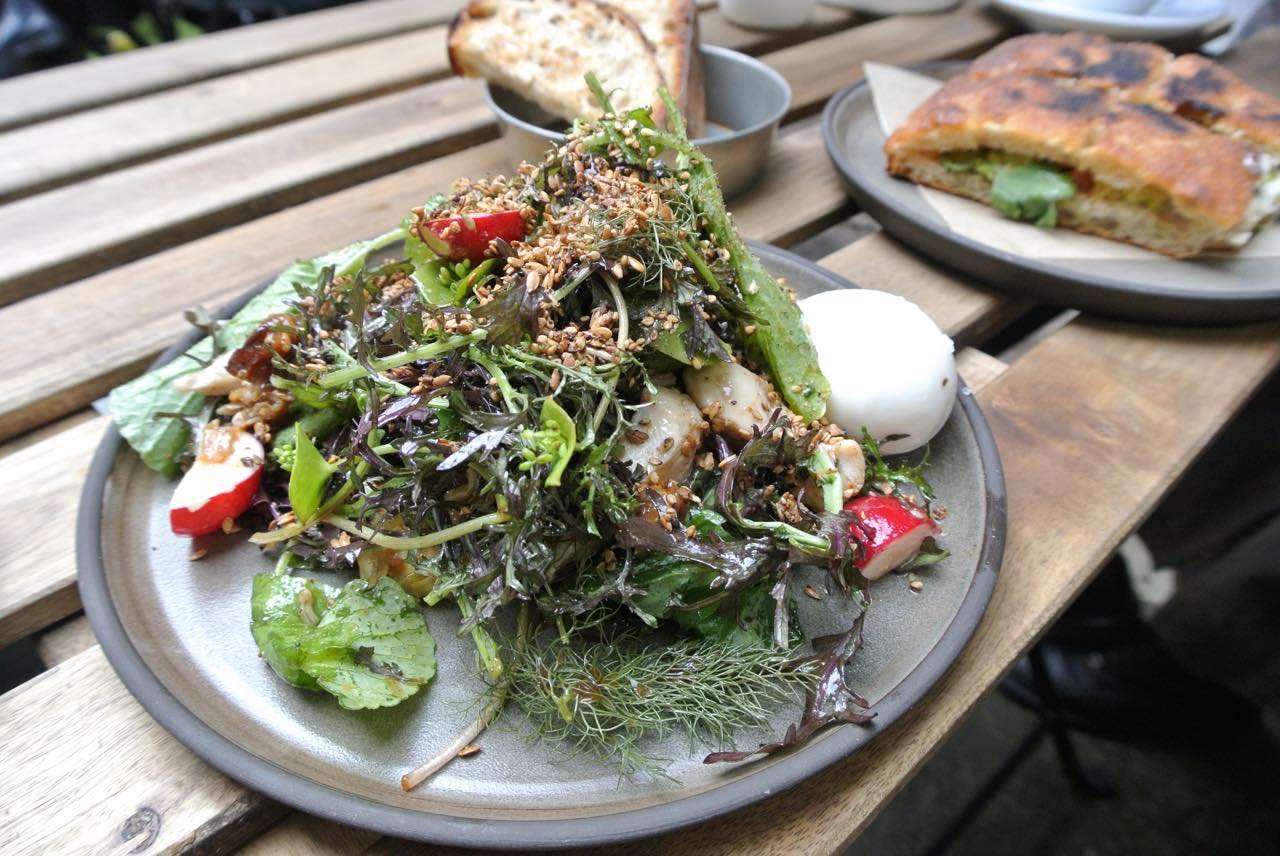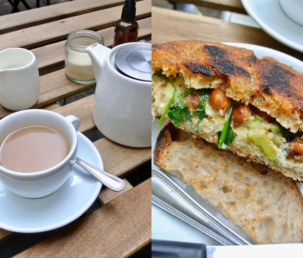 このカフェが注目されるべきなのは、創業当初から地産地消を目指し、ヨーグルトやジャムを始め、自分たちで作れるものは全て手作りし、その他のものもできるだけUK内の小規模生産者から仕入れるように心がけていること。コーヒーはHas Bean Coffee、お茶類はPostcard Teas、パン類はLittle Bread Pedlar、卵はRookery Organic Eggsと聞くと、どれほど自分たちのカフェに誇りを持っているか分かりますよね。野菜も信頼できる近郊農家から取り寄せています^^