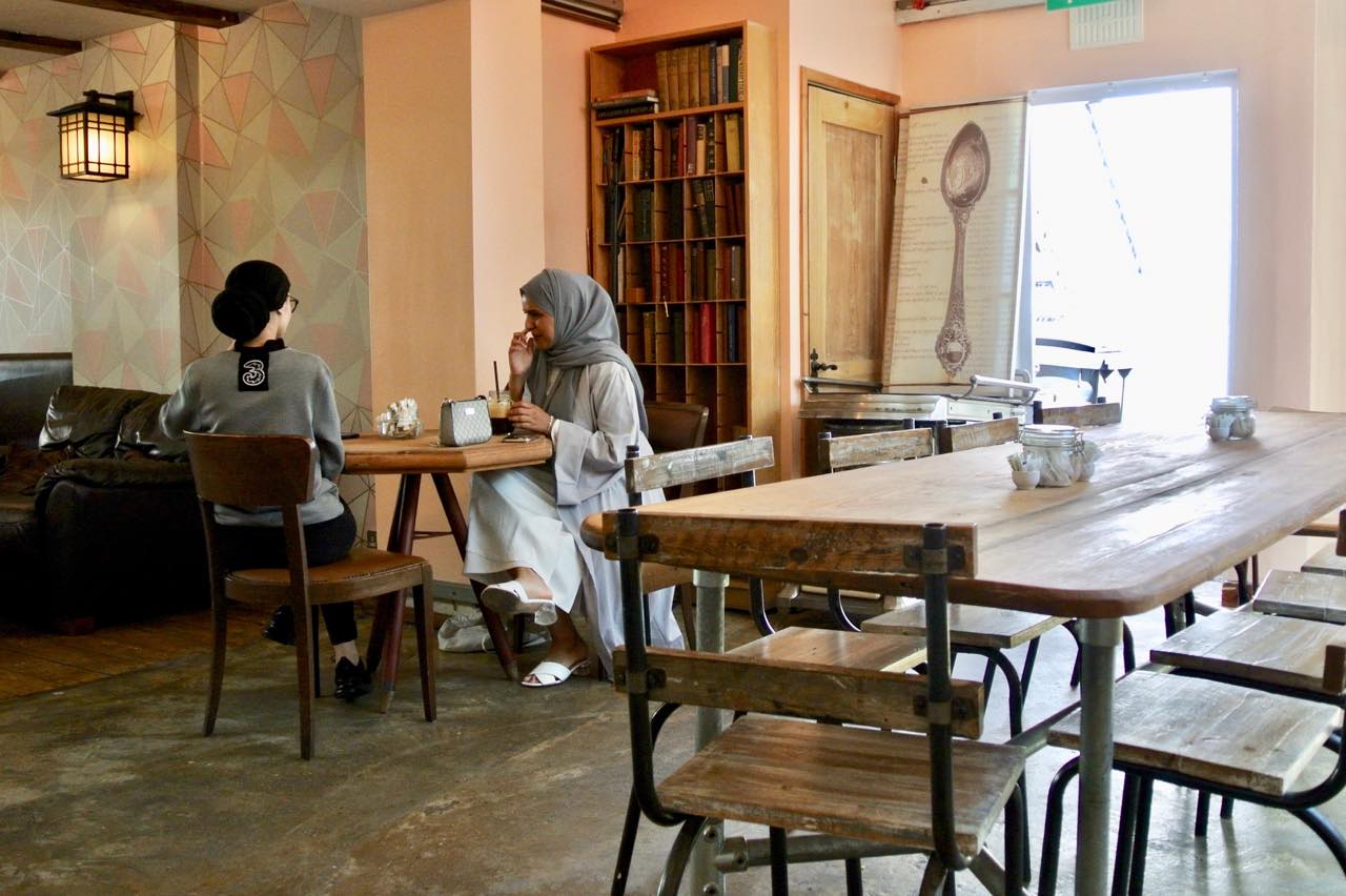 最初の訪問ではここに座って、バクラヴァみたいなお菓子とコーヒーを楽しみました。