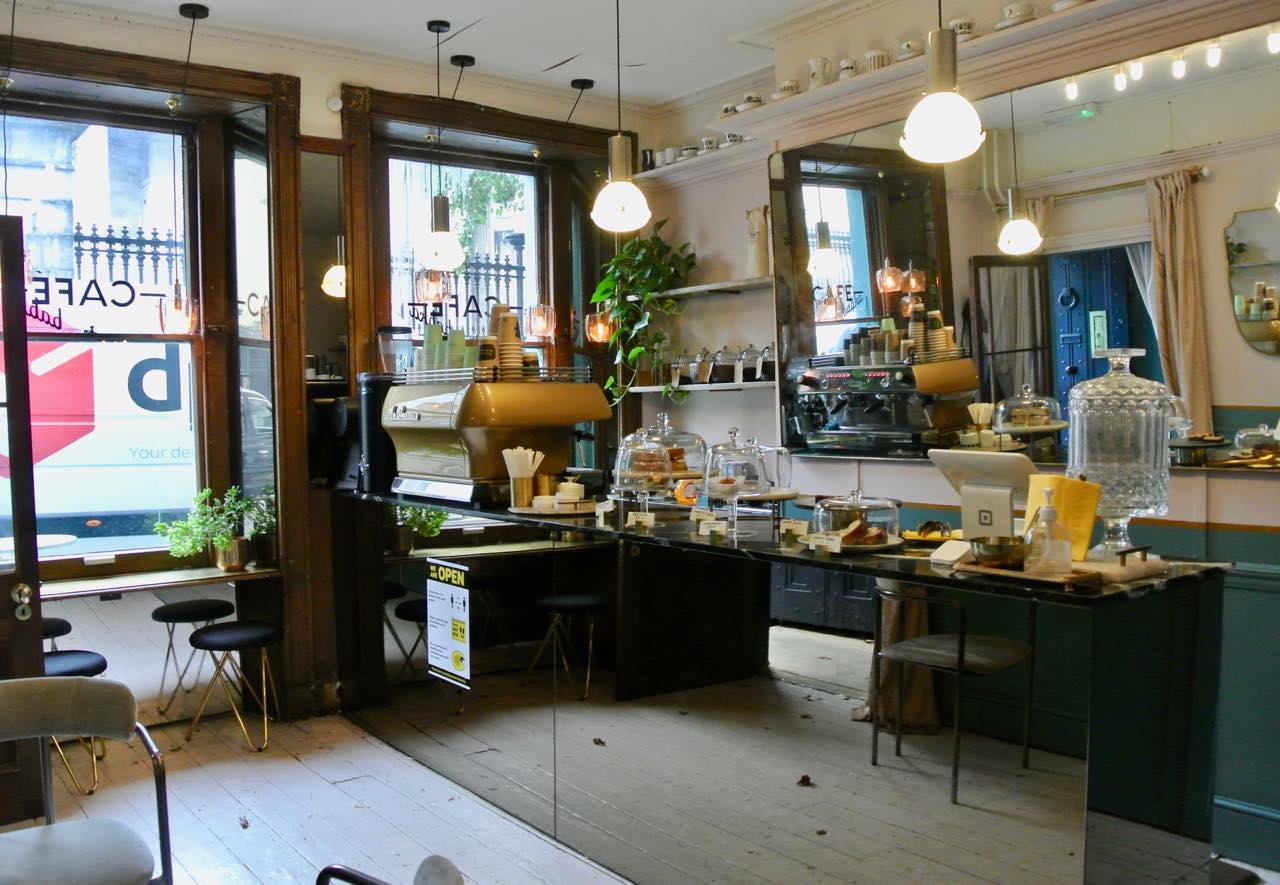 ロケーションは大英博物館の正面入り口前。すごい場所ですが、もっと驚くのは「観光名所の周りにある飲食店は野暮ったい」という従来のイメージを覆す、大変スタイリッシュなインテリアとスタイル。ヒップな東ロンドンにあってもおかしくない、スーパーお洒落なカフェなのです〜。