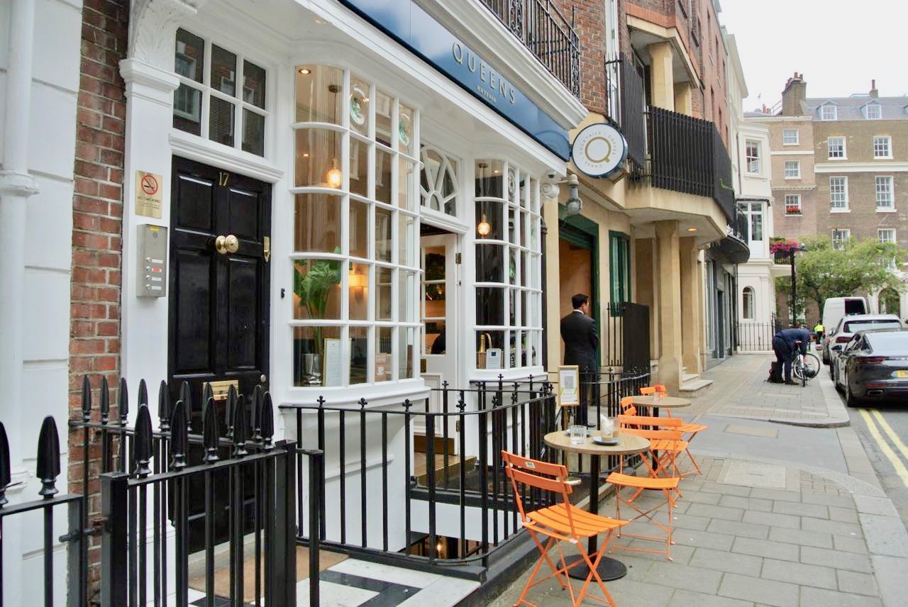 2020年夏のパンデミック期間中、メイフェアの静かな通りに登場したバーのような佇まいのお洒落なカフェがこちら。Queens。