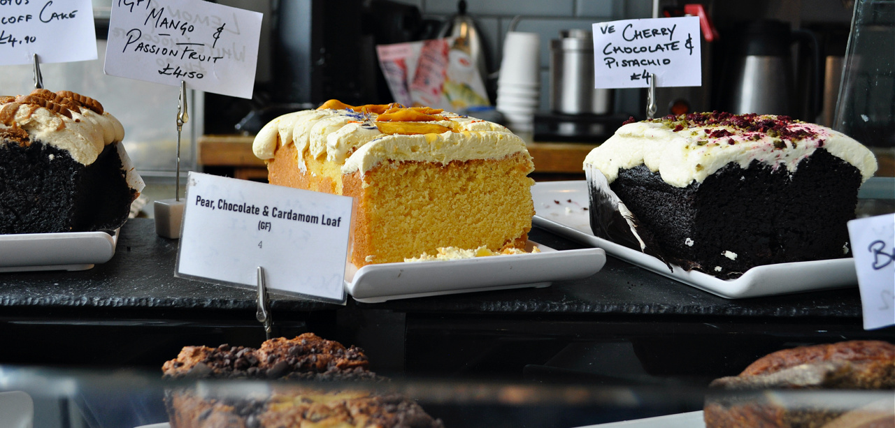 用事でクラッパム・コモンを訪れたとき、このレトロ仕様のカフェに目が釘付けになり、ふらりと立ち寄ったのが運の尽き。カウンターに可愛らしく並ぶ焼き菓子に惚れ込み、予定していなかったティータイムとなりました。