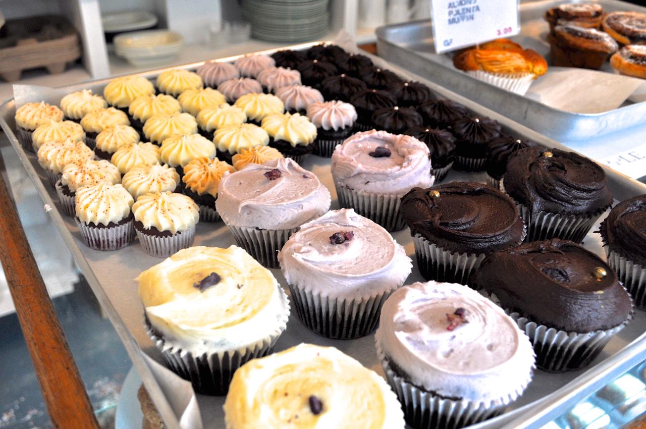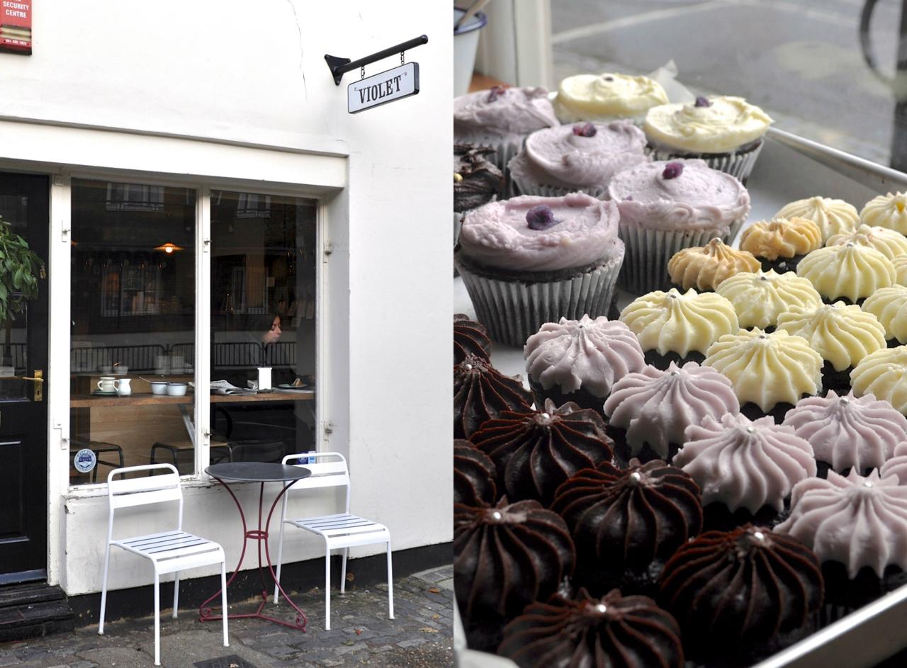 アルミ・トレイにヴィンテージのショーケース、ノスタルジックな佇まいのカップケーキたち……。東ロンドンの家族が憩うロンドン・フィールズ近くの住宅街に、こつ然と姿を現すレトロなVioletは、オーガニック素材を使った自然派カップケーキを食べられるベーカリーとして不動の人気を築いています。