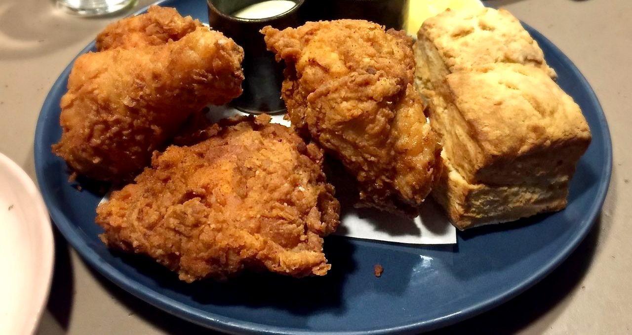 バターミルクのフライドチキン! 四角いビスケットはスコーンそのもの。大人のお子様ランチですね。