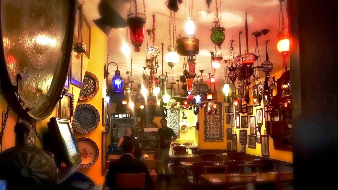 ブルーが目印。美しいランプシェードのインテリアでそれとわかります ^^  数軒先に「Gallipoli Again」があるので、注意! そちらも同じクオリティです♪   Againではバースデー・パーティーを開くとベリーダンスで祝ってもらえます。