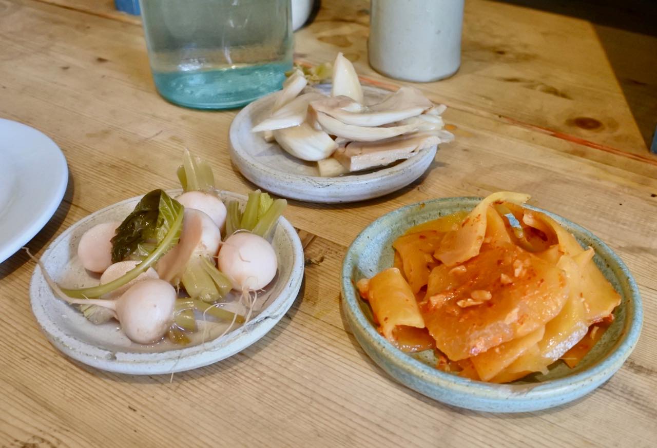 2018年に姉妹店として誕生したLittle Duckは「The Picklery」(ピクルス製造所)のサブネームを持つ通り、さまざまな季節の野菜をどんどん美味しく発酵させたりピクルスにしたりして、時に発酵ドリンクも作って自然の恵みを謳歌します。Ducksoupと同様、自然派ワインも扱っており、プロの発酵料理をおつまみに楽しく賑やかにフル・ランチやディナーをいただけるという寸法。