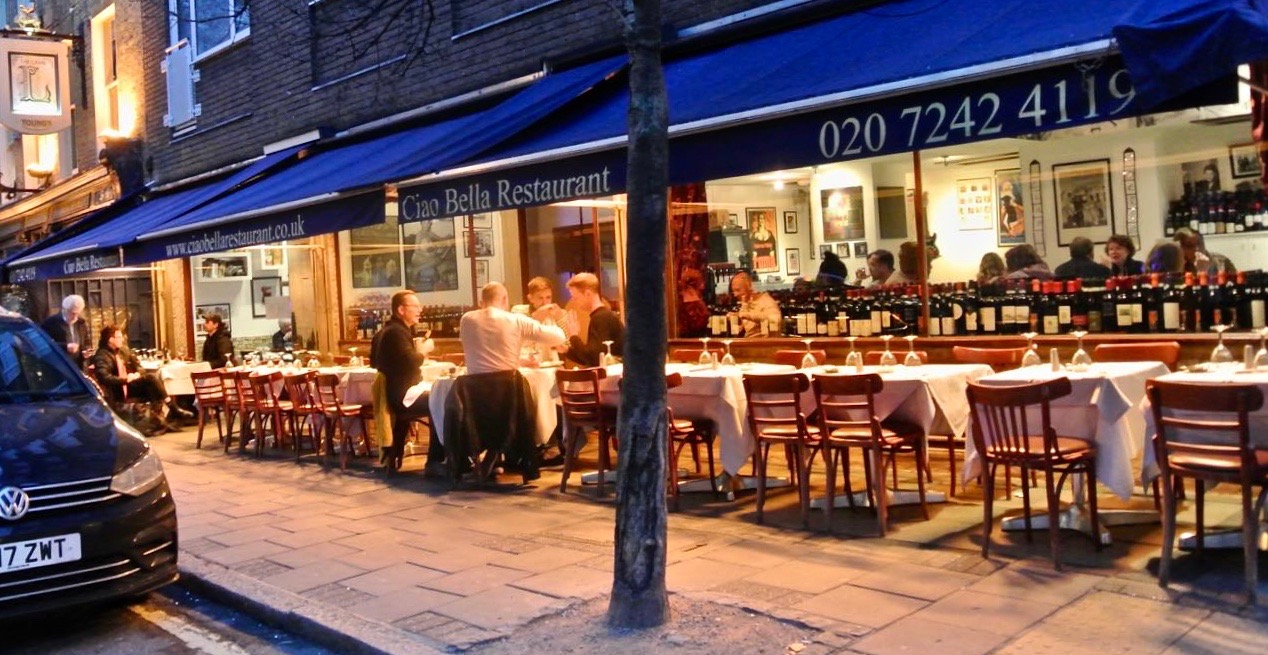 風景に馴染むレストランというのがあります。あたかもずっとそこにあり、今も佇み、いつまでも変わらないかのように思える場所。文教地区ブルームズベリーのファッション通り、Lamb’s Conduit Street沿いにあるCiao Bellaも、そこになくてはならないレストランの一つです。
