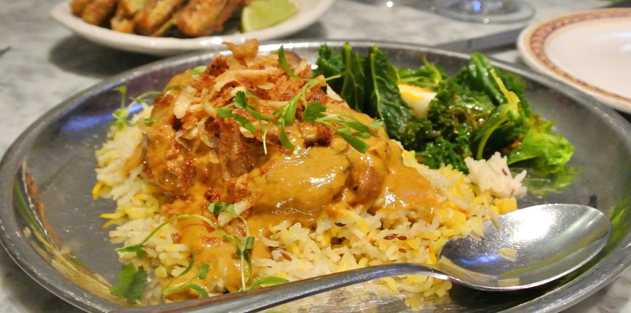 さて、お料理はインド料理を筆頭に、東南アジア、西アフリカ、中東、英国などのエッセンスを取り入れた面白い折衷主義です。いくつかある「Moilee」と呼ばれるココナッツ・カレー風味の料理やオクラのフライなどを見ると、インドや東南アジア風のものがいちばん多いのかもしれません。エビのすり身で作るスコッチエッグは、次回いただきたいメニューの一つでもあります^^