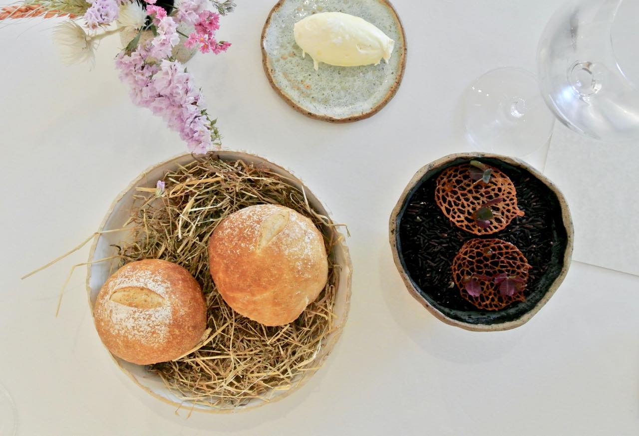 私たちは5月半ばに訪れたのですが、今メニューを見るとその頃のままなので本日ご紹介するメニューをまだ楽しんでいただけるのかも^^ 前菜には花ズッキーニのフライ、キクイモのスープがありました。私はキクイモの方をいただいたのですが、ポテト・ピューレの島の周りにソースの海を注いでいただく感じ。バランスよく大変美味しかったです♪