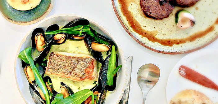 私はお魚(Hake)をいただき大満足! パーフェクトな火通しだったのはローストしたお魚もそうですが、ムール貝も同じでした。ワイルド・ガーリック風味のオランデーズ・ソースもちょうどいい濃さ。葉っぱが美しい彩りを添えています。