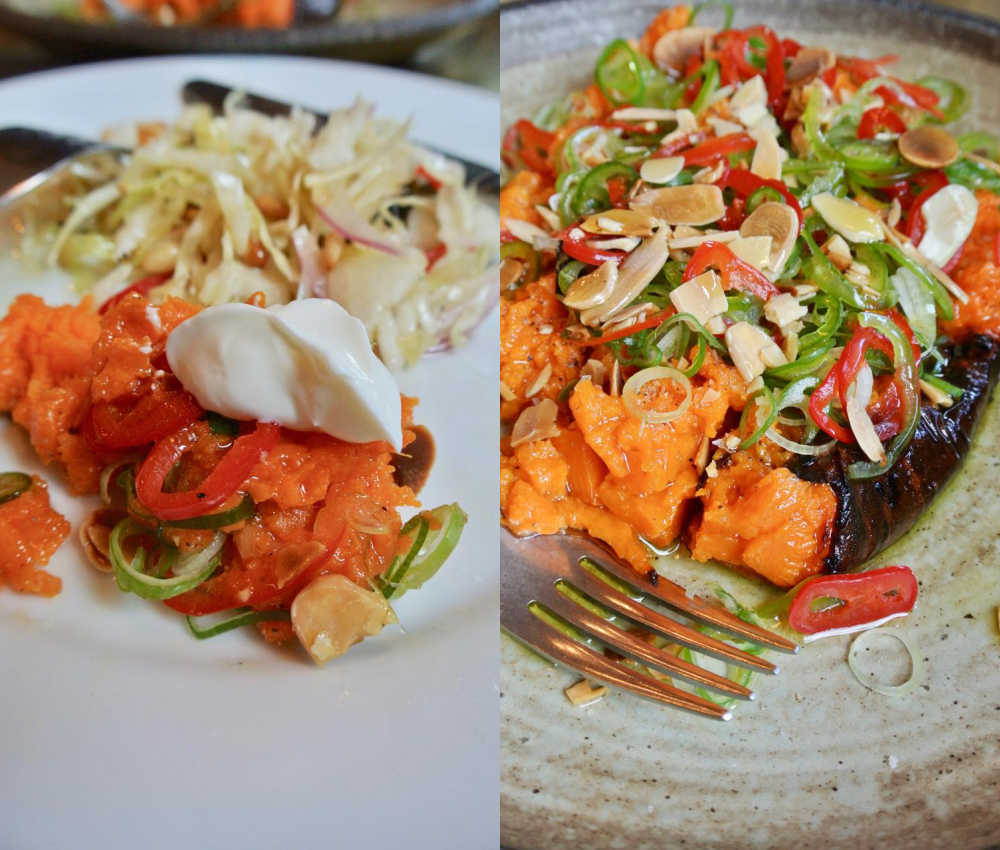 スイート・ポテトとネギって合いますよね♡ これは家で作れそう。やってみるべし。本当はヨーグルト・ソースがかかっているのですが、ラクトース不耐性の友人のためにヨーグルトは別添えで持ってきてくれました♪