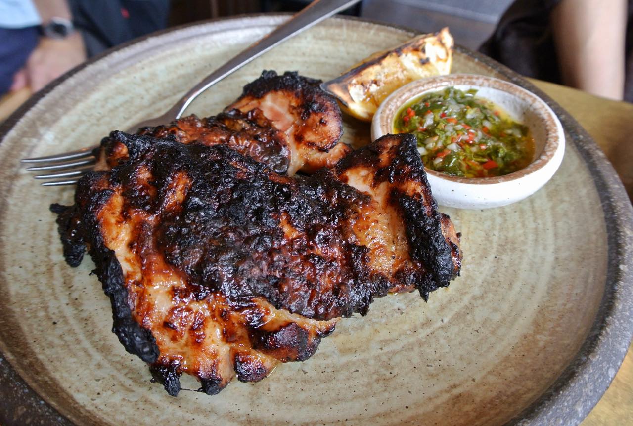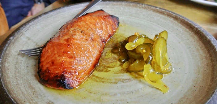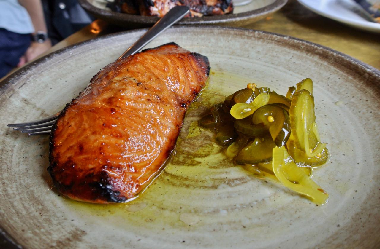 メイン・コースとしてお肉とお魚の両方を頼んでみて、こちらも大正解。絶対に食べていただきたいのが、サーモンのグリル。合わせ味噌の西京焼きを思わせるほんのりとした甘さをまとったホロホロの身が日本人には嬉しい。付け合わせのキュウリの酢の物は、このサーモンのためにベスポークされた最高の伴侶としてそこにあります。今年の外食のベスト・ディッシュの一つ♡