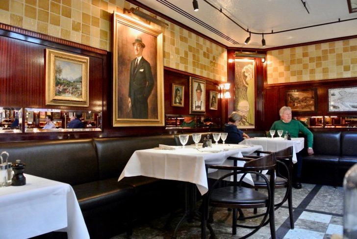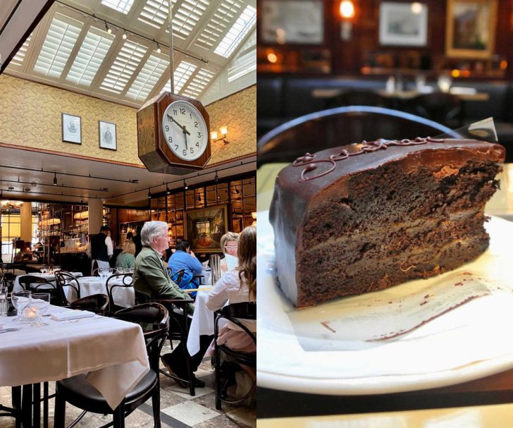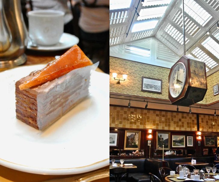 20世紀初頭のウィーンを彷彿とさせるフィッシャーズはもうずっとそこに佇んでいるようにも感じるのですが、実はマリルボーン・ハイ・ストリートの一画に創業してまだ8年。同じようなグランド・カフェ風のお店を得意とする人気のレストラン事業家、Corbin & Kingが手がけたものなのです。どおりでインテリアとしての鏡使いや革張りの椅子、駅舎を思わせる大きな時計やタイルの壁、そして白いテーブルクロスなど、隅々まで入念に上質が表現されているはずです^^