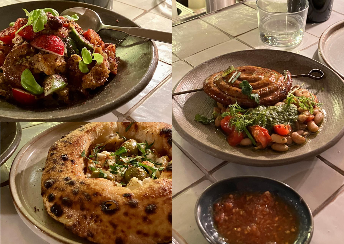 さぁドキドキワクワクのお料理です。まずは定番のフムス、アンチョビ、フラットブレッドで腕試し。フラットブレッドは選択肢がたくさんあり、ラム肉&ザタール・ヨーグルトを選びました。