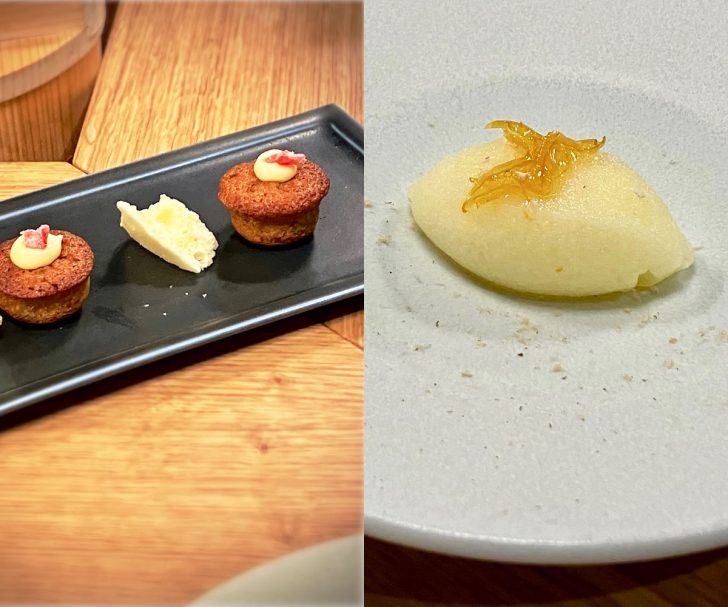 Evernightから出されるデザートも逸品揃いでした。日本酒と柚子のソルベは、お酒がふくよかに香るまろ味のあるテクスチャーが身上。フレーバーの引き出し方がプロフェッショナルで、この倍はいただけると思いました。締めのケーキたちもフレーバーありきで、ミシュラン級のお味。さすがです。
