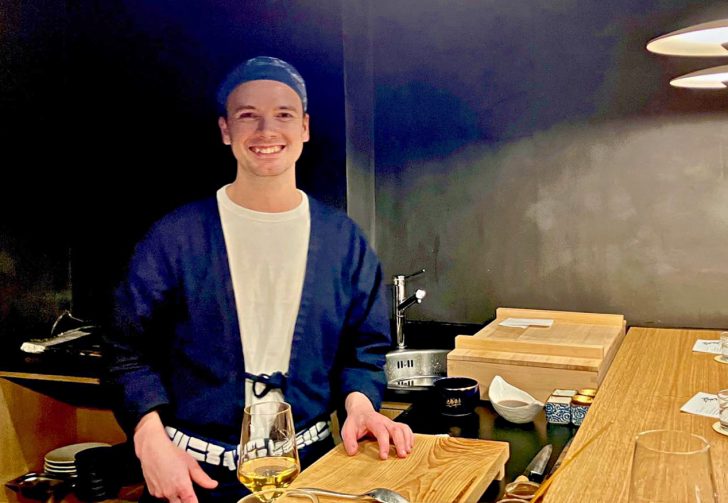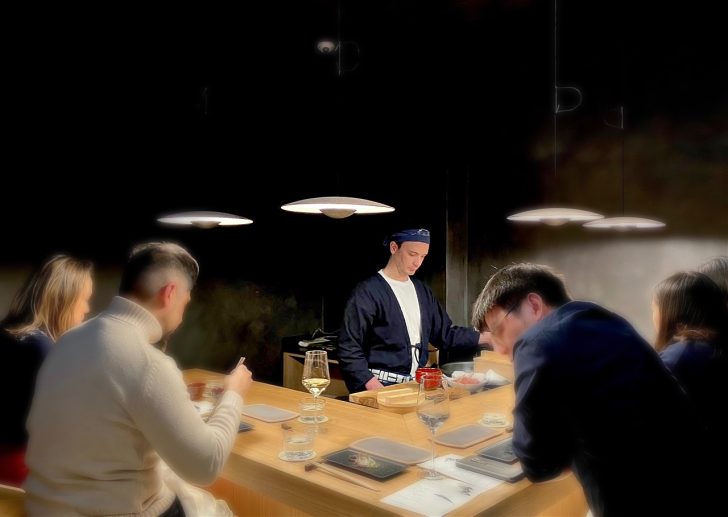 そんなショウランさんがTemakiエグゼクティブシェフの座はそのままに、今度はナイン・エルムスの真新しい米国大使館隣に登場している和食レストラン「Evernight」のプライベート・ルームを席巻 !? 駆けつけてみると、新しいビルの1階にある素敵な和食レストランの一画が、ショウラン風の小粋な寿司バーに変身していました♡