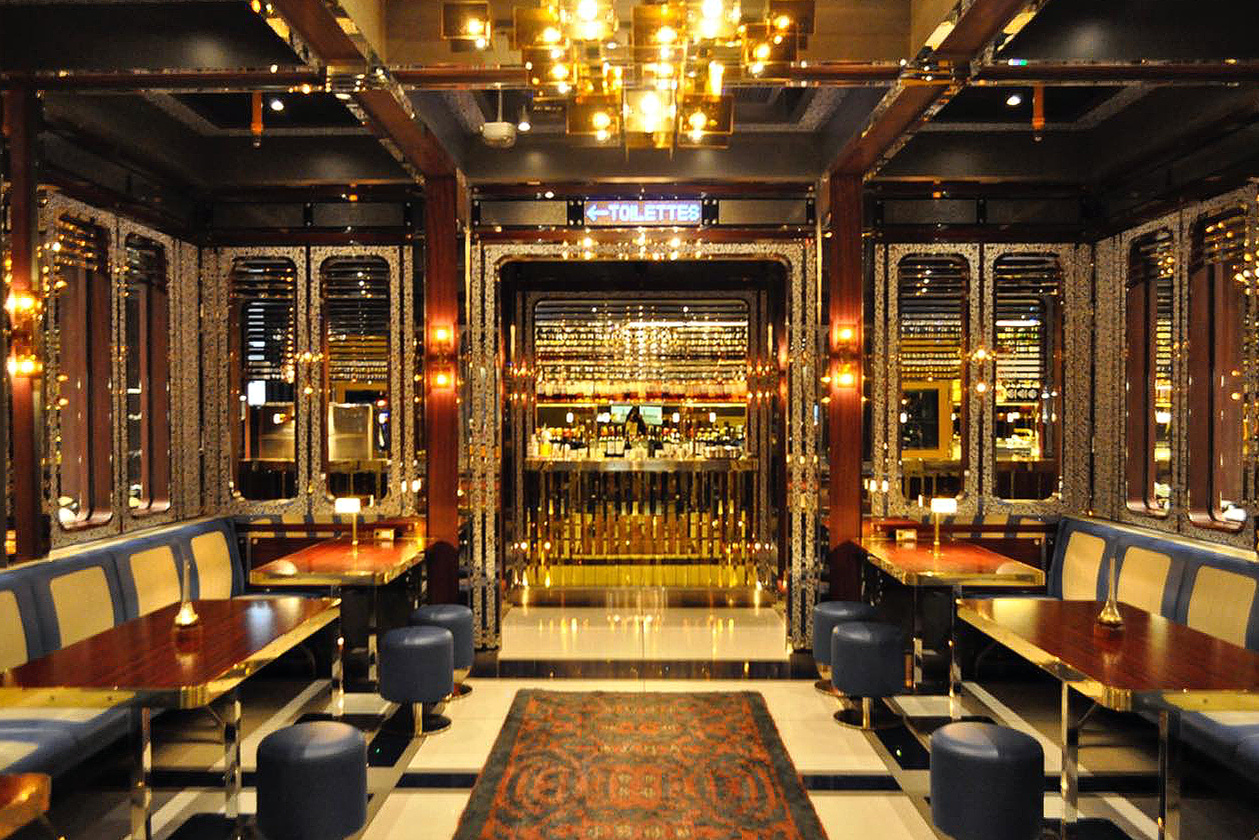 名前の響きとロケーションから勝手にポップなカジュアル店だと思って訪れてみたら……その豪奢なインテリアに衝撃を受けました。鏡やクリスタルを多用したデコレーションは互いを照らしあい隅々までキラキラ。にもかかわらずダークな照明使いで、素材も上質なのでギラギラにはならず、全体的に非常にシックな印象なのです。