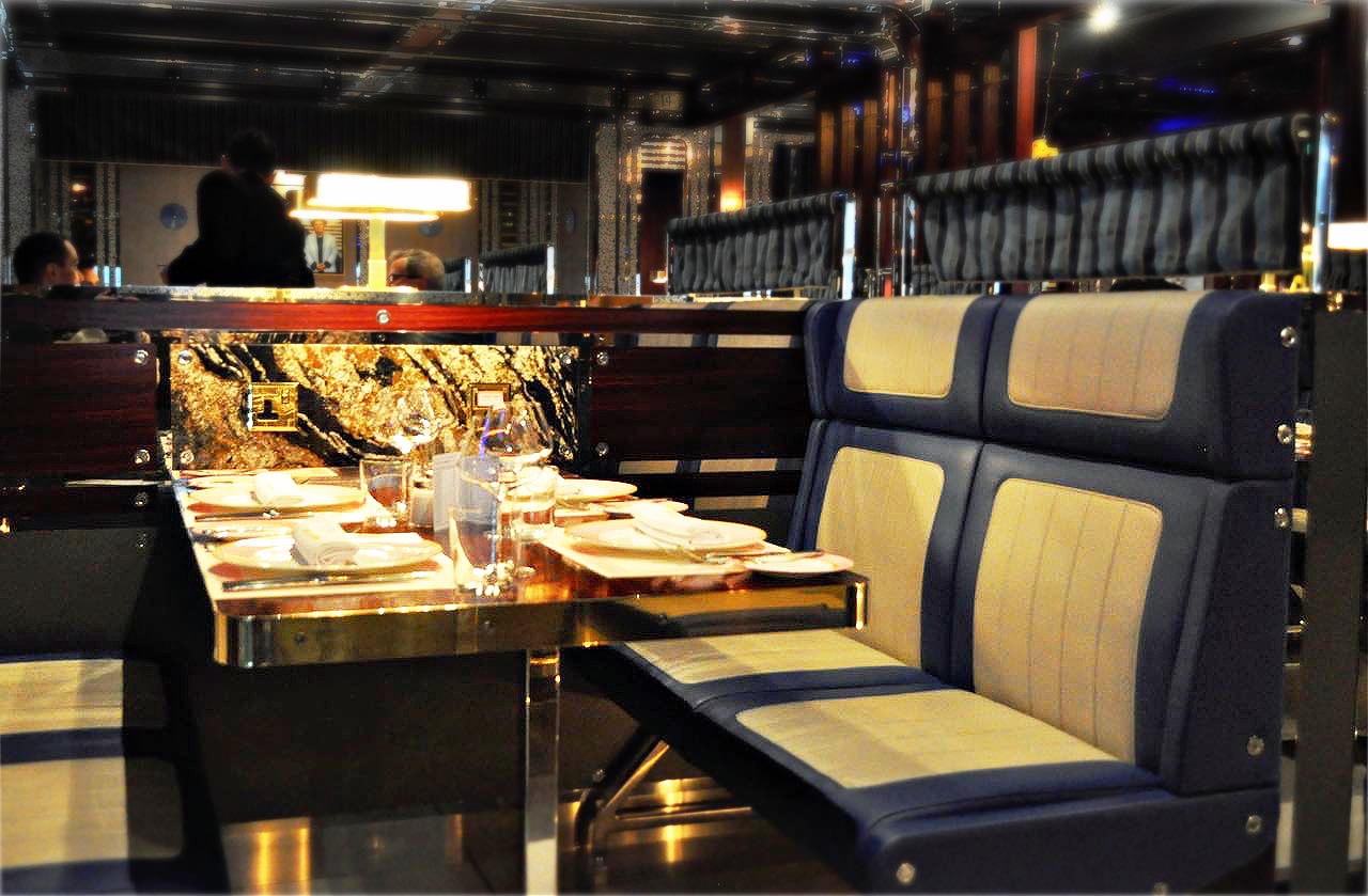 オープン直後にお邪魔した際に感じたのは、まるで豪華客船やクルーザー内にいるような不思議な感覚でした。調べてみると、どうも王室所有のロイヤル・ヨット・ブリタニアからインスピレーションを得ているそうなので、大当たり! しかもすべてのテーブルがブース席。豪華列車で旅をしているような感覚もあり、プライベートも保たれるのも素敵です。