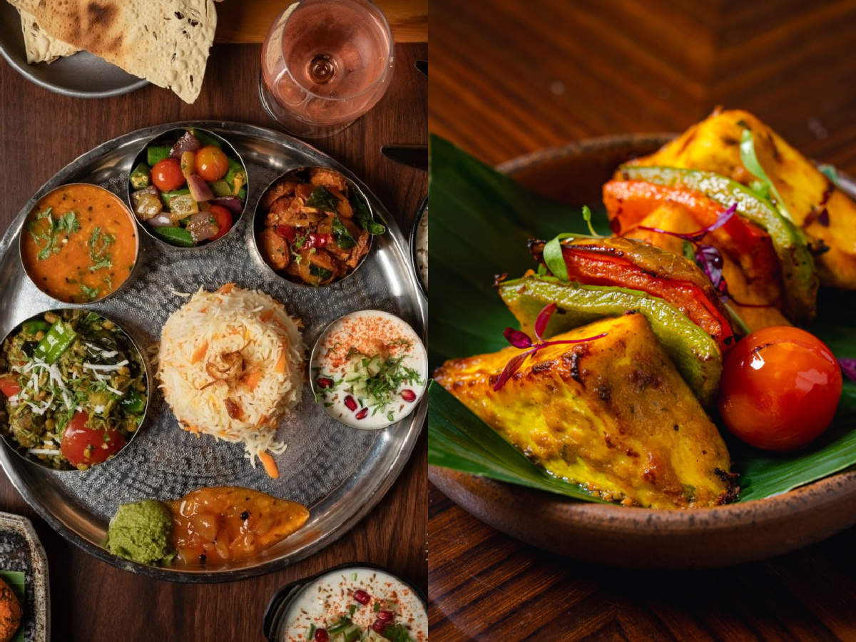From official facebook page。左がインド風の定食、タリです! 右はインドのチーズ、パニールのグリル。インド料理はベジタリアンにも優しいのです。