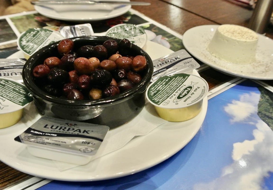 正統派ポルトガル料理店でいつもありがたいのは、座るとすぐにオリーブやフレッシュ・チーズなどのおつまみがやってくること。突き出しの場合もありますし、手をつけるとお金を取られる場合もありますが、いずれにせよ食べてしまってください^^ だってお安いですし、美味しいのですもの。