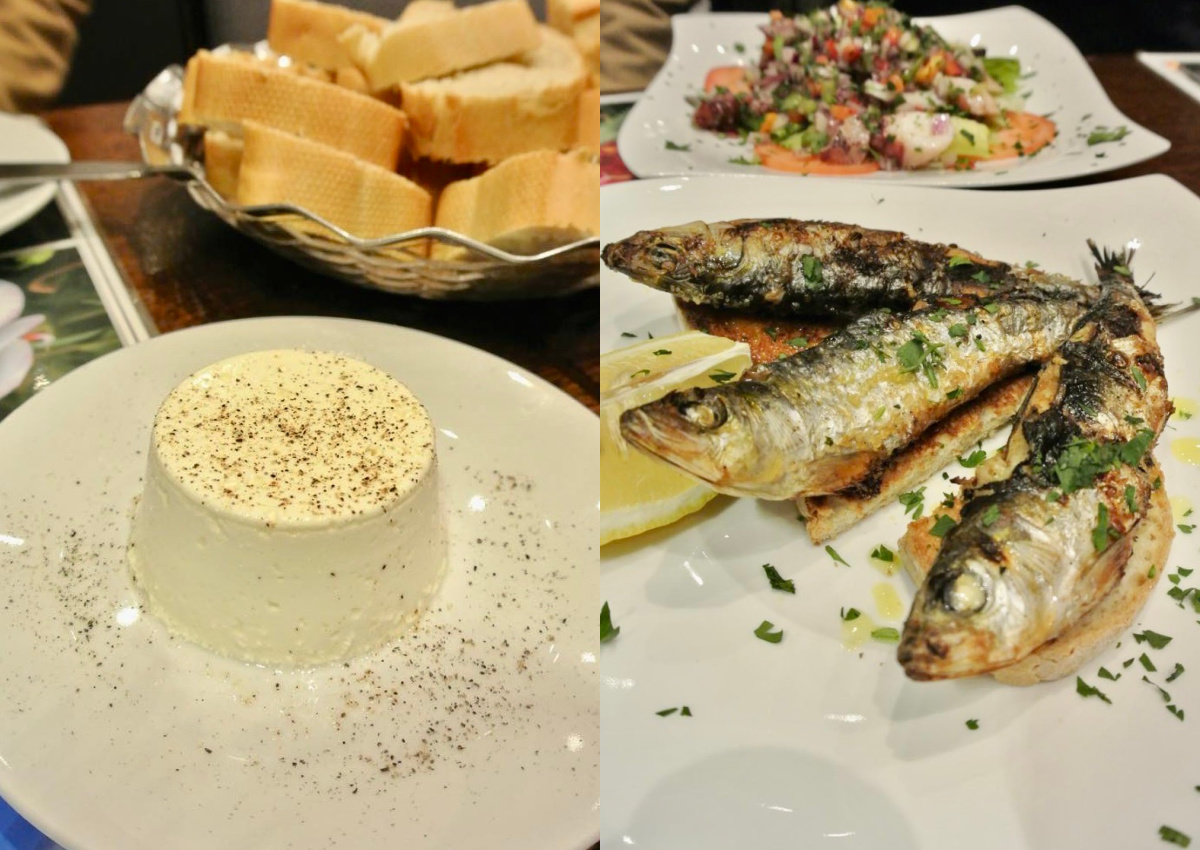 このフレッシュ・チーズはお店の手作りです。イワシのグリルは外せない!