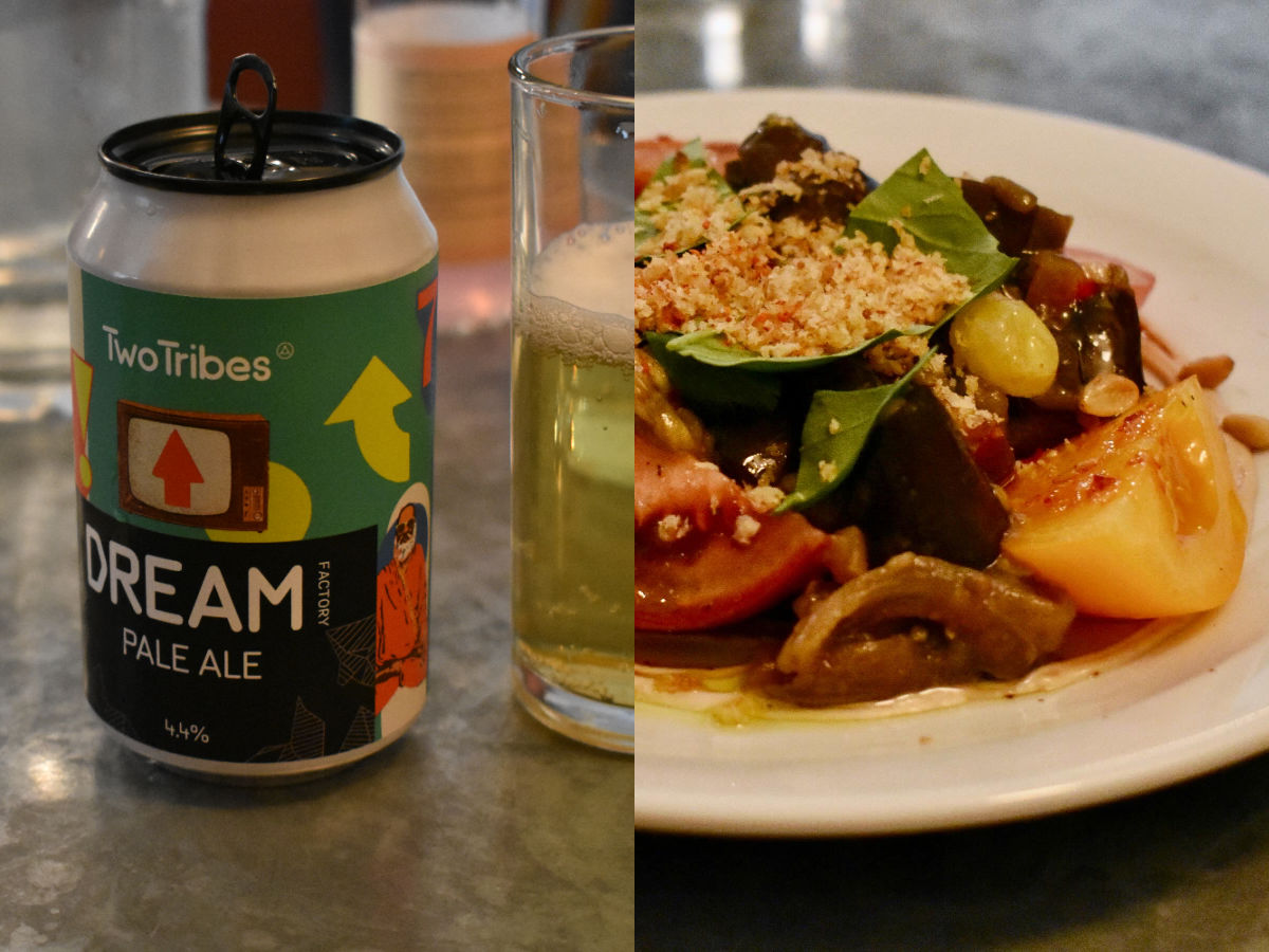 北ロンドン発のTwo Tribesのビールがトマトとナスのサラダに合いますね^^