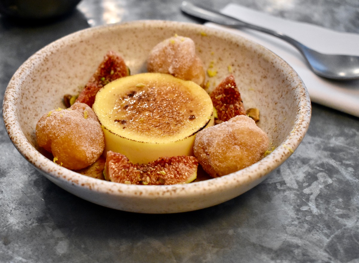 デザートもすごかった! ふわふわの一口ドーナッツに、パンナコッタのように美しく成型されたカスタード、イチジクが添えられた一品なのですが、この三者を一緒にお口に運ぶことで格別なハーモニーを楽しむことができます。
