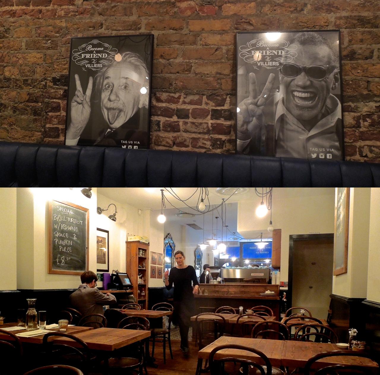 さて、そんな歴史ある通りには、由緒あるお店がつきもの。中でもGordon’s Wine Barは1890年創業の老舗中の老舗。今でも店内に入ると穴蔵的な雰囲気にちょっぴり19世紀的な匂いが感じられ、ロンドンでもトップ5に入るワイン・バーとしてその名を知られています。その創業一族であるゴードン・ファミリーの若き姉妹、ソフィーさんとローズさんが始めたベンチャーがこちら、Villiers All Day Dining Room。同じ通り沿いに2014年7月にオープンしました。