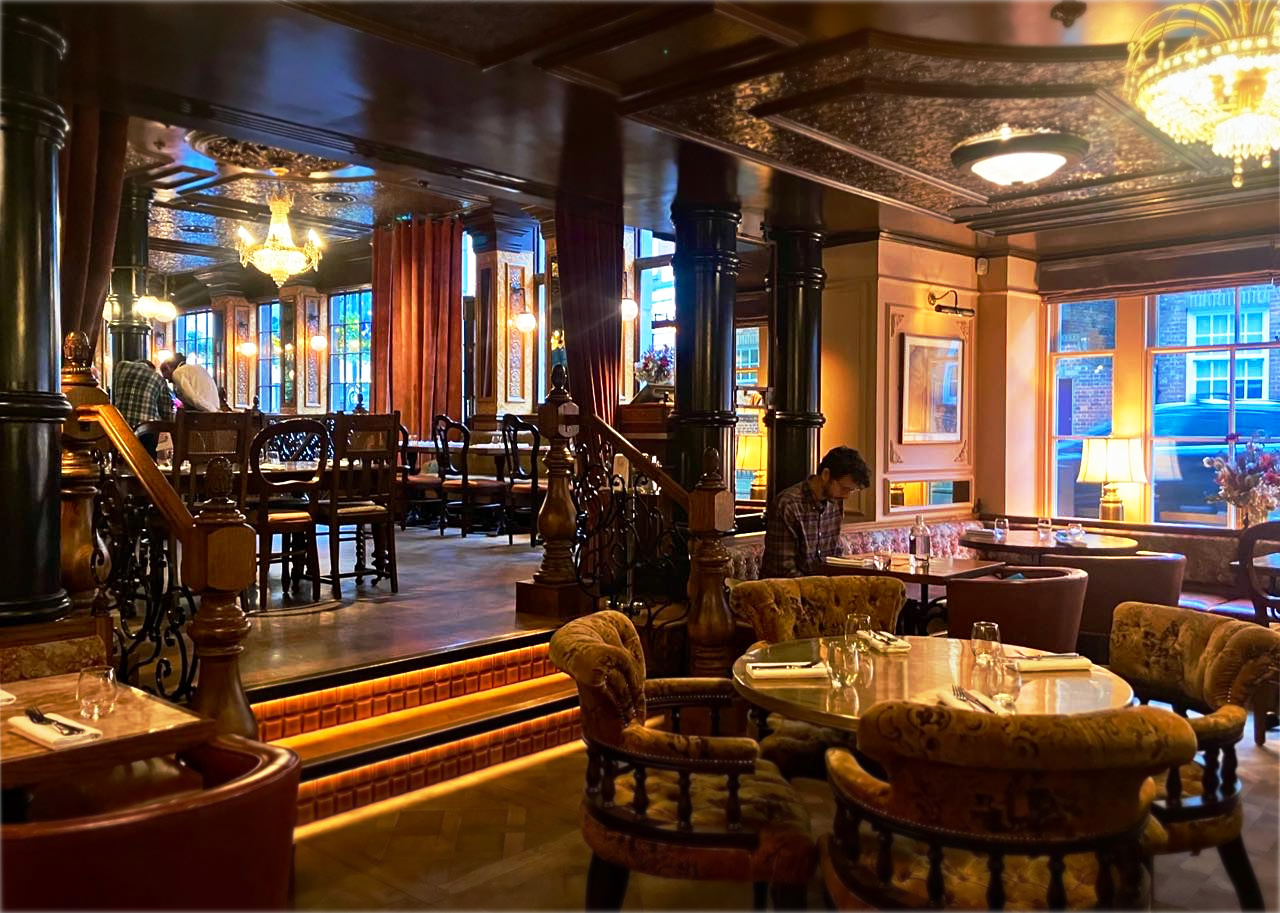 カドガン・アームズはもともと地元チェルシー民に17世紀から愛されてきた名店で、ややくたびれてきたところを、今ノリに乗っているレストラン・グループ「JKS」とパブやバーの専門事業者であるドミニク・ジェイコブさんが共に乗り出し、完全にイメチェンして現代風に甦らせたのです。