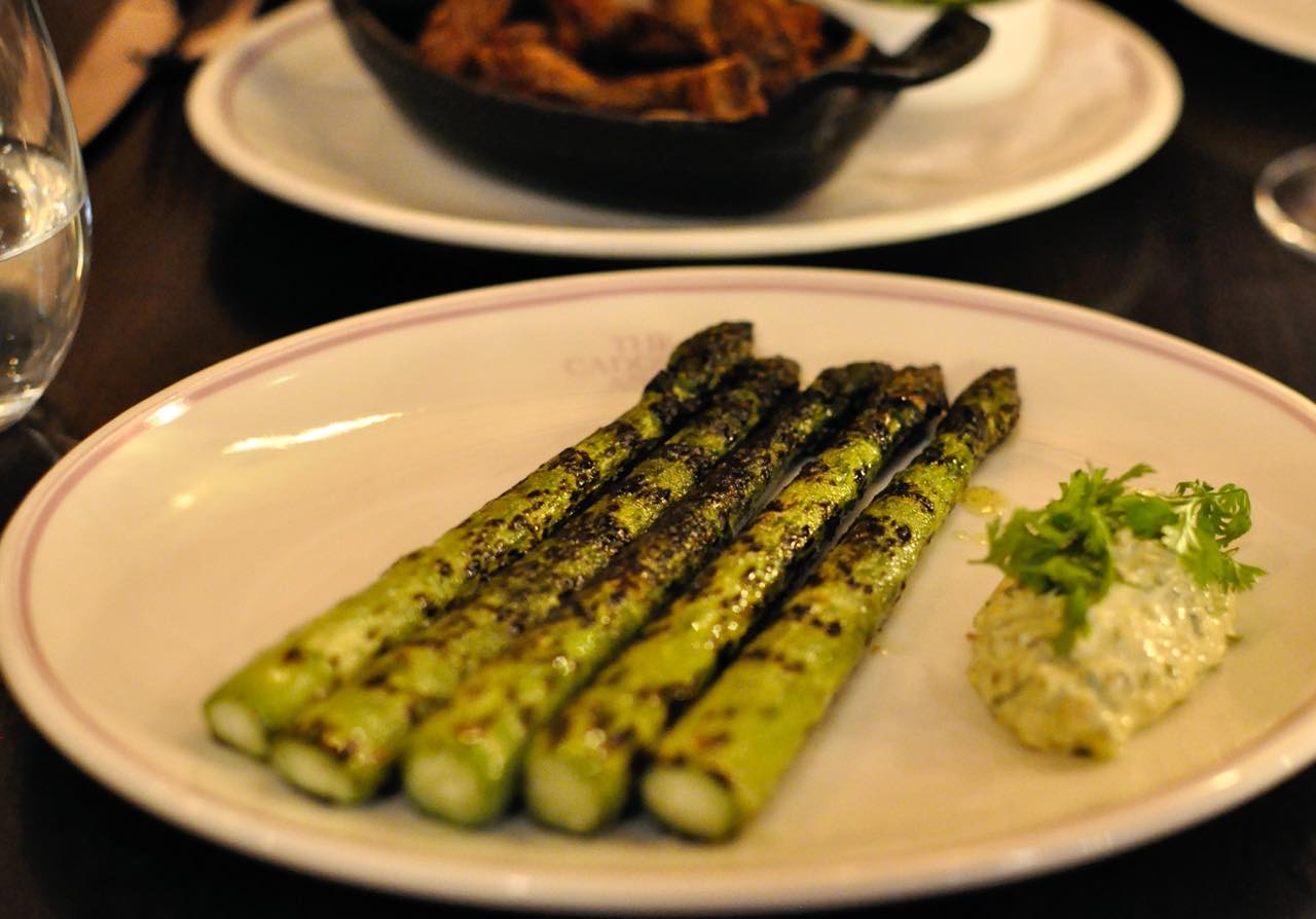 旬のアスパラガス! ほどよいグリル加減。そして爽やかな卵入り「ソース・グリビッシュ」がピッタリ。