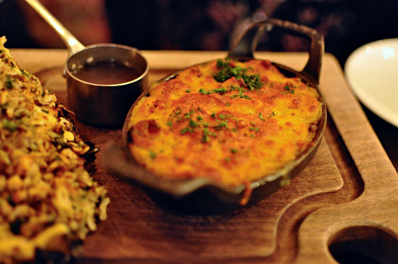 とても美味しかった「ガーデナーズ・パイ」。レンティル豆とマチュア・チーズ♡ 付け合わせのキャベツが一番凝ってるくらいすごかった! 上にはヘーゼルナッツ。